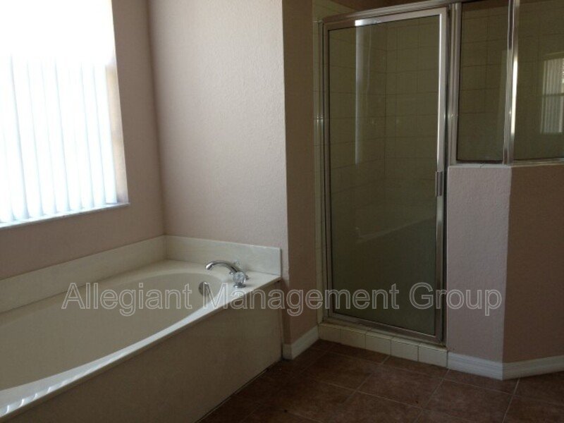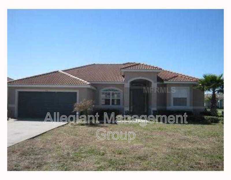 Lovely 3 bedroom 2 bathroom home in Tuscany Reserve Community in Poinciana. Over 1800 square feet of a living area with covered porch at the back of the house. Split bedroom floor plan. Master bath features a garden tub with a separate shower and a walk in closet. Ceramic tile throughout the home. Community has a pool, clubhouse and fitness center. Rent includes lawn care, water for irrigation and basic cable. HOA Application and Approval Required. Washer and Dryer convenience only. Schedule a showing today!