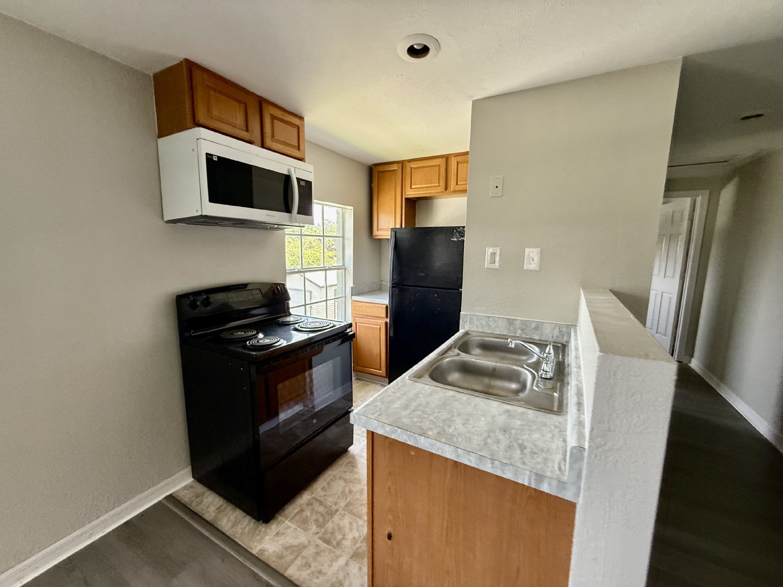 This beautifully updated one-bedroom, one-bath apartment in Haines City offers comfort and convenience in a well-maintained second-floor unit. Featuring brand-new flooring and fresh paint throughout, the apartment also includes a spacious kitchen equipped with a microwave, refrigerator, and range. Two window A/C units are provided to keep you cool, and ceiling fans are installed in many rooms for added comfort. Enjoy your morning coffee or unwind in the evening on the private five-foot balcony. One reserved parking spot is included, along with lawn care for worry-free living. Landlord participates in the Section 8 program. With modern upgrades and a great location, this unit won’t last long—schedule your showing today!